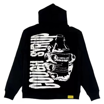450GMS peso pesado de alta calidad que es un montón de jarabe para la tos estampado suelto Casual Streetwear pulóver Sudadera con capucha para hombres